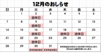 令和7年12月の店休日について
