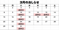令和8年3月の店休日について
